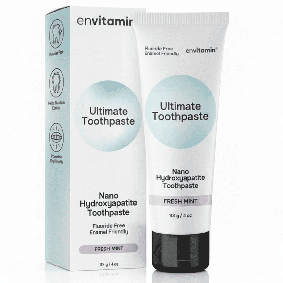 In a market full of generic pastes that only mask problems, Envitamin Ultimate Toothpaste delivers meaningful results – enamel restoration, reduced sensitivity, brighter teeth, and a healthier mouth overall. Whether you’re fighting plaque, struggling with sensitivity, or just looking for a fluoride-free upgrade, this formula is built to give you long-term confidence in your smile.